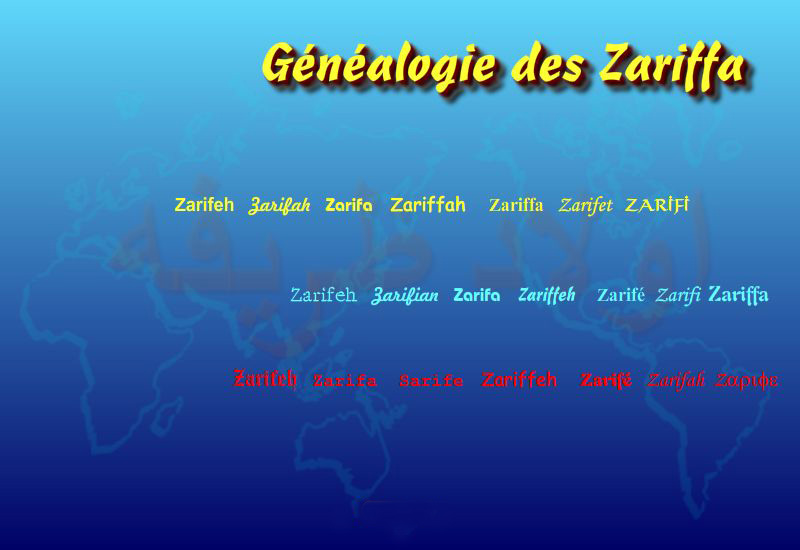 Genealogy of the Zariffa / Zarifah / Zarifa / Zariffeh/ Zarifeh /Zarife families